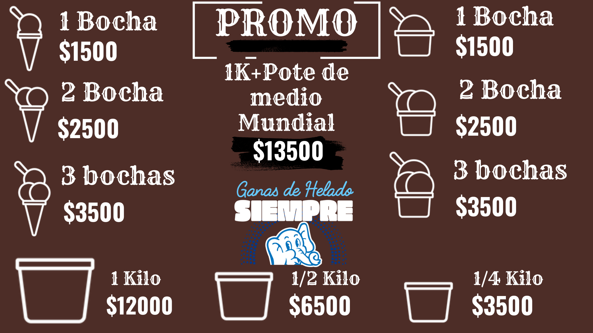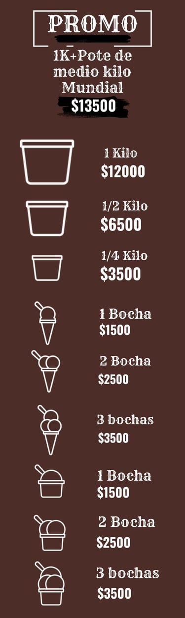 CHOCOLATE - FRUTILLA - AMERICANA - DULCE DE LECHE GRANIZADO