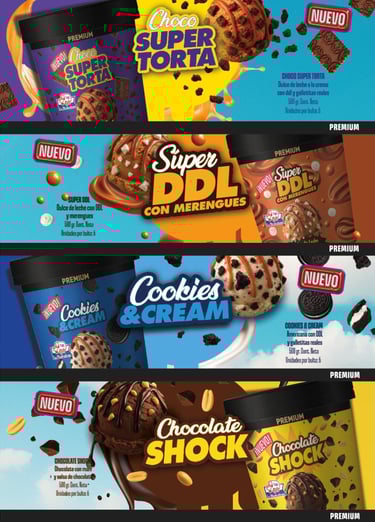Chocolate - Dulce de Leche Granizado - Frutilla - Americana